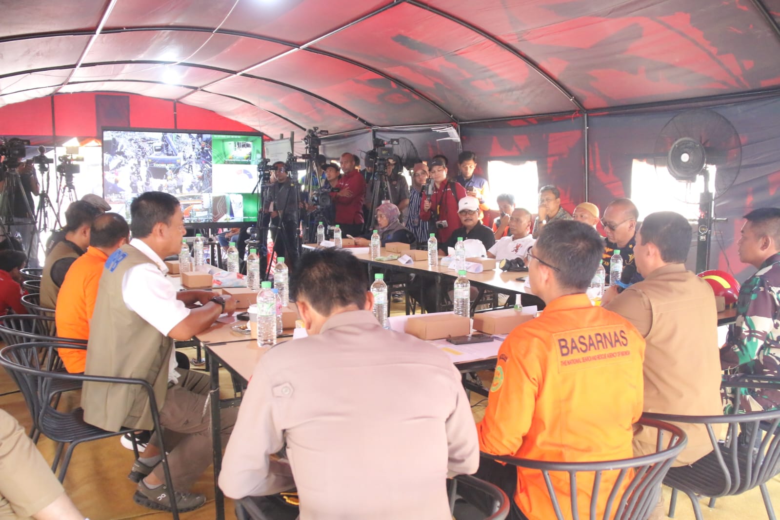 Sidoarjo- Hari ini Sabtu 04/10/2025 di Posko Tanggap Darurat, Kepala BNBP Letjend TNI Suhariyanto serta Deputi III Penanganan Darurat BNPB Mayjend TNI Budi Irawan laksamana pertama Bramantyo, Kapolres Sidoarjo, Dandim 0816 Sidoarjo, Asisten Adm Perekonomian Pembangunan Mahmud, serta beberapa unsur terkait melaksanakan jumpa pers dalam Rapat Koordinasi rutin harian untuk mengevaluasi pada setiap kekurangan dan kelemahan operasi penyelamatan dan evakuasi dan penanganan secara sekeluruhan terjadinya bencana yang menimpa Pondok Pesantren Al Khoziny di Sidoarjo.