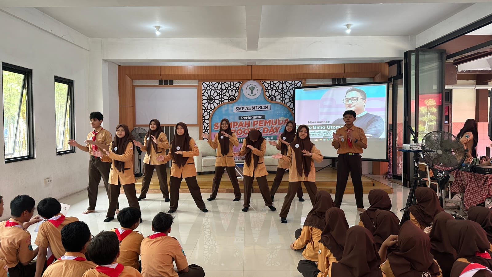 SIDOARJO – Semangat persatuan para pemuda 1928 kembali menggema di Aula SMP Al Muslim, Senin (28/10). Melalui kegiatan Sumpah Pemuda & ROOTS Day 2025, para pelajar meneguhkan tekad untuk menjadi generasi yang berkarakter, berempati, dan anti perundungan.Kegiatan yang diikuti seluruh siswa kelas VII hingga IX itu memadukan nilai kebangsaan dengan gerakan positif remaja. Tujuannya menanamkan semangat nasionalisme sekaligus membentuk pribadi yang peduli terhadap sesama.
