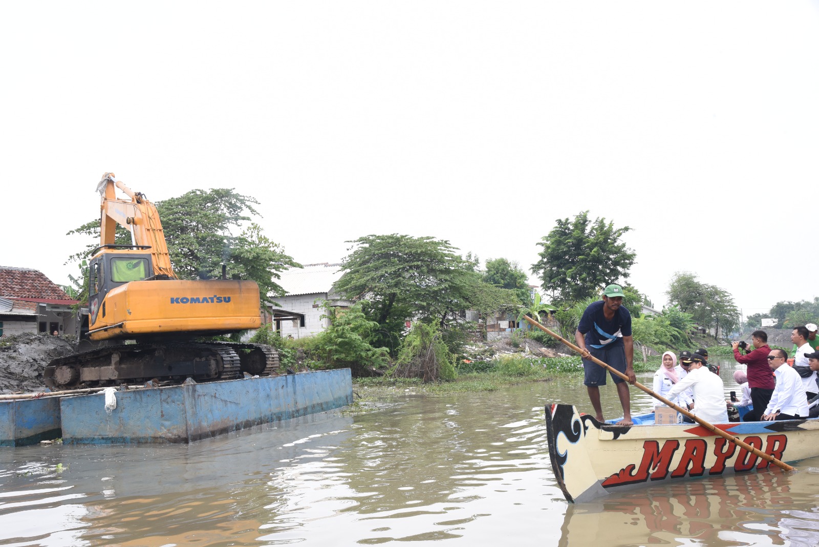 SIDOARJO – Hujan sudah mulai turun. Pengerjaan normalisasi sungai di Kabupaten Sidoarjo terus dikebut. Alat-alat berat sudah dikerahkan. Endapan lumpur maupun tumbuhan liar dan sampah disungai diangkat kepermukaan. Bupati Sidoarjo H. Subandi ingin pengerjaan pengerukan sungai tersebut berjalan maksimal. Pagi tadi, ia turun langsung memantau pengerjaannya, Rabu, (29/10). Tiga sungai di Kecamatan Candi disusurinya. Mulai dari sungai Mbah Gepuk Balongdowo sampai sungai Kedungpeluk dan sungai Tekuk Penjalin Pecabean dipantaunya. Bupati Sidoarjo H. Subandi mengatakan, sembilan alat berat milik Pemkab Sidoarjo terus bekerja. Ditargetkan 80 persen pengerjaan normalisasi sungai rampung sebelum puncak musim hujan. Bahkan alat berat akan ditambah jika kondisi dilapangan memungkinkan. Ia akan meminta Dinas PU Bina Marga dan Sumber Daya Air (DPUBMSDA) Sidoarjo menyewa alat berat jika benar-benar dibutuhkan.“Menghadapi musim hujan ini mudah-mudah kita benar-benar siap, normalisasi sudah berjalan semua, minimal 80 persen tercapai sebelum puncak musim hujan,”ucapnya.Bupati H. Subandi mengatakan penanganan banjir akan difokuskan di wilayah rawan genangan. Diantaranya wilayah Kecamatan Tanggulangin, Candi, Porong dan Taman. Pengawasan akan diperketat agar pengerjaan normalisasi sungai berjalan maksimal. Bahkan ia meminta DPUBMSDA Sidoarjo rutin memantau pengerjaannya. Setiap Minggu harus ada laporan progres pengerjaan normalisasi sungai tersebut. Ia juga akan meminta pemantauan menggunakan drone agar hasil pengerjaannya lebih akurat.“Sudah saya sampaikan kepada teman-teman dari PU bahwa setiap Minggu kita cek, dan nanti dari teman-teman humas supaya pakai drone untuk mengecek sejauh mana progres pengerjaannya, semisal Minggu ini sudah sampai mana agar kita tahu persis sudah sejauh mana pengerjaan normalisasi sungai dilakukan,”ujarnya.Bupati H. Subandi berharap pengerjaan normalisasi sungai selesai disisa waktu satu bulan setengah ini. Salah satunya normalisasi sungai Mbah Gepuk Balongdowo Candi sepanjang 4 km. Saat ini pengerjaan normalisasi sungai Mbah Gepuk sudah mencapai sekitar 1,8 kilometer. Ia juga telah menginstruksikan DPUBMSDA Sidoarjo untuk lembur pengerjaannya di hari Sabtu dan Minggu.“Sementara ini satu alat berat hanya mampu bekerja menormalisasi panjang sungai sekitar 150 meter per hari, tadi sudah kita instruksikan PUBM untuk lembur hari Sabtu, Minggu agar memaksimalkan kerja kita.” terangnya. Dalam kesempatan tersebut ia juga menghimbau kepada masyarakat untuk ikut kegiatan normalisasi lingkungan. Saluran-saluran kecil yang tersumbat dapat dibersihkan. Ia juga akan membuat surat edaran kepada camat dan kepala desa untuk ikut kegiatan normalisasi lingkungan diwilayahnya masing-masing. “Nanti kita gerakkan bersama untuk gotong royong di tingkat kelurahan maupun di tingkat desa. Ini suratnya sudah dibikinkan Sekda, insyaallah dalam waktu dekat sudah bisa direalisasikan,” ujarnya. (*)