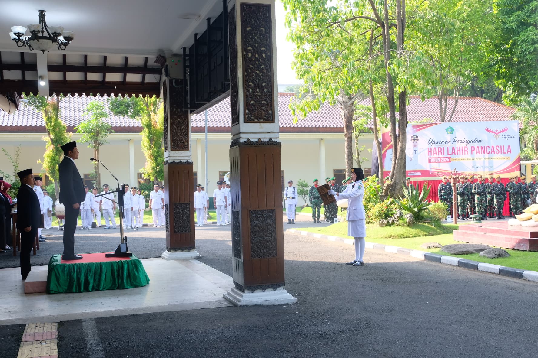 SIDOARJO – Pemerintah kabupaten Sidoarjo menggelar Upacara Memperingati Hari Lahir Pancasila yang jatuh pada tanggal 1 Juni 2025, yang dilaksanakan di pendopo Delta wibawa, Senin 02/06/2025.Bupati Sidoarjo H. Subandi SH, M.Kn sebagai inspektur upacara membacakan sambutan Ketua Badan Pembinaan Ideologi Pancasila Yudhian Wahyudi yang menjelaskan bahwa Pancasila adalah jiwa bangsa, pedoman hidup bersama, serta penuntun dalam mewujudkan cita-cita Indonesia yang merdeka, bersatu, berdaulat, adil dan makmur sehingga nilai – nilai Pancasila harus diterapkan dalam berbagai bidang agar setiap kemajuan berakar pada nilai ketuhanan, kemanusiaan, persatuan, kerakyatan dan keadilan sosial.“Dalam pancasila, kita belajar bahwa kebinekaan bukanlah alasan untuk terpecah, melainkan kekuatan untuk bersatu. Dari sila pertama hingga sila kelima, terkandung prinsip-prinsip yang menuntun kita membangun bangsa dengan semangat gotong-royong, keadilan sosial, dan penghormatan terhadap martabat manusia,”katanya.Pemerintah telah menetapkan asta cita sebagai delapan agenda prioritas menuju indonesia emas 2045 dimana salah satu yang paling fundamental dalam asta cita tersebut adalah ideologi Pancasila harus senantiasa dikokohkan serta revitalisasi nilai Pancasila dalam segala dimensi kehidupan harus dilakukan seperti memperkokoh ideologi pancasila, demokrasi dan hak asasi manusia.Dalam membacakan sambutan Bupati Subandi juga mengajak untuk memperkokoh ideologi pancasila yang berarti menegaskan kembali bahwa pembangunan bangsa harus selalu berakar pada nilai-nilai ketuhanan, kemanusiaan, persatuan, kerakyatan, dan keadilan sosial serta mengajak seluruh masyarakat agar bergotong royong, menghargai perbedaan dan menanamkan nilai – nilai Pancasila dalam setiap aspek kehidupan selain itu juga mengajak semua pihak untuk menjadikan Pancasila sebagai sumber inspirasi dalam berkarya, berbangsa dan bernegara.“Mari kita jadikan hari lahir pancasila ini sebagai momen untuk memperkuat komitmen kita terhadap nilai-nilai luhur bangsa. Jadikan pancasila sebagai sumber inspirasi dalam berkarya, berbangsa dan bernegara,”pungkasnya.(Afeksi.com)