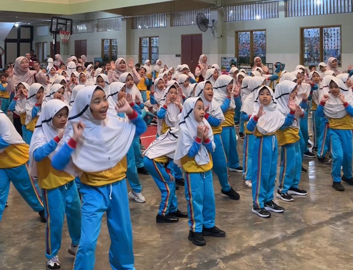 SIDOARJO — Jumát, 23 Januari 2026, SD Al Muslim Sidoarjo mengadakan acara edukatif dan menyenangkan untuk memperingati Hari Gizi dengan tema “Healthy Inside, Active Outside”. Acara ini bertujuan untuk menanamkan kesadaran akan pentingnya gizi seimbang dan gaya hidup sehat pada siswa sejak usia dini.Rangkaian kegiatan diawali dengan senam ceria dan energik bersama Kak Zin Viant yang diikuti secara antusias oleh seluruh siswa. Gerakan yang sangat energik dan penuh keceriaan membuat suasana pagi menjadi lebih semangat, serta mendorong siswa untuk membiasakan tubuh aktif bergerak sebagai bagian dari pola hidup sehat.Usai senam, siswa mengikuti kegiatan sarapan bersama dengan bekal makanan sehat yang telah dibawa dari rumah. Menu bekal tersebut mencakup unsur gizi seimbang, seperti karbohidrat yang memberikan energi, protein untuk membangun otot, vitamin untuk menjaga kesehatan tubuh, serat untuk melancarkan pencernaan, dan lemak sehat untuk mendukung fungsi otak.