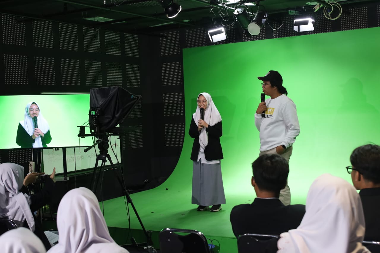 Selain mendengarkan pemaparan, para siswa juga ikut dalam praktik siaran langsung. Mereka berlatih menjadi penyiar berita dan presenter di depan kamera dengan arahan mentor dari tim KECE Media UNESA. Melalui kegiatan ini, para siswa belajar cara menyampaikan pesan secara efektif dan menarik sesuai karakter media digital saat ini.